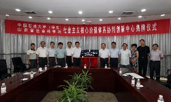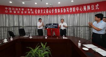 7月21日上午,米乐mile官方网站(华东)和山东省社会科学院联合组建的“社会主义核心价值体系协同创新中心”举行揭牌仪式,我校副校长李兆敏教授与山东省社科院党委书记唐洲雁教授共同为中心揭牌。仪式由米乐mile官方网站司江伟教授主持,学院部分教师和学生代表参加会议。