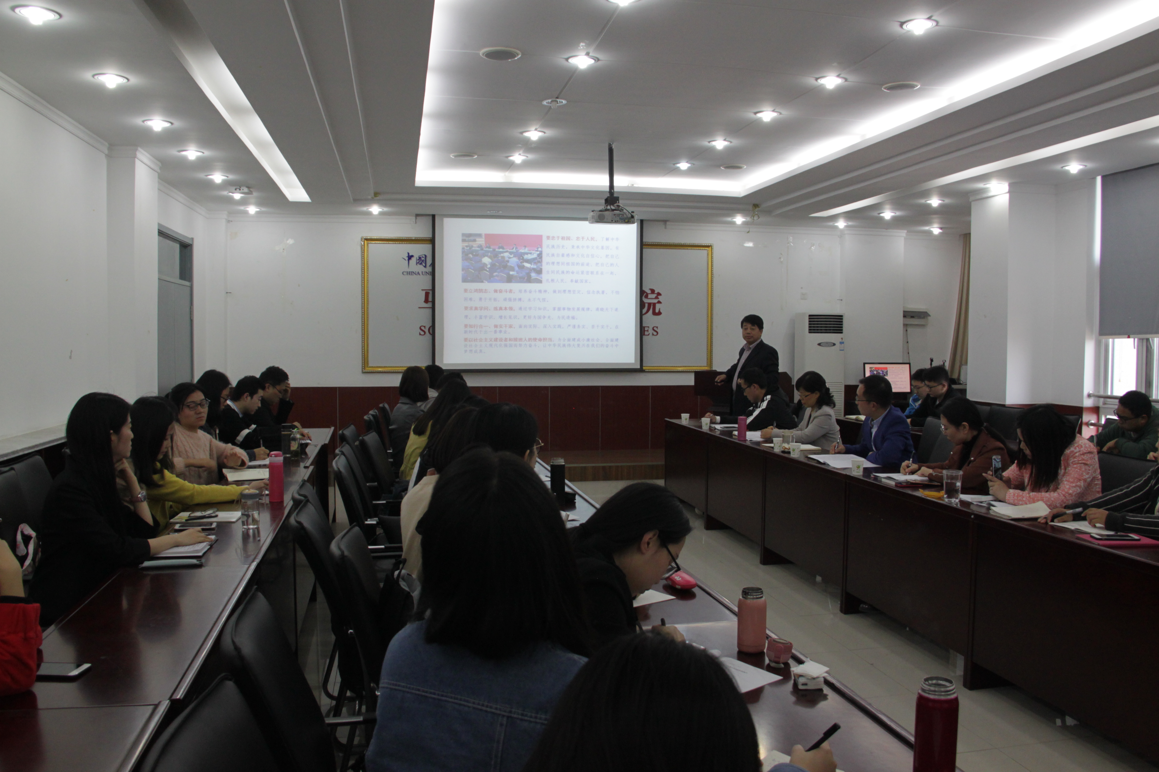 5月4日,学院召开“习近平总书记视察北京大学重要讲话精神” 学习座谈会,会议于下午四点在文理楼举行。参加本次座谈会的人员有学院党委书记司江伟、校团委副书记石国卿、学院党委副书记袁爱军、学院团委副书记于泳、习近平新时代中国特色社会主义思想青年研习会骨干成员以及马院全体研究生。