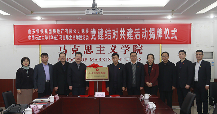 【本站讯】1月4日,米乐mile官方网站(华东)米乐mile官方网站党委与山东钢铁集团房地产有限公司党委举行党建结对共建活动揭牌仪式。学校党委副书记王勇;莱钢集团党委书记、董事长,山钢地产公司党委书记、董事长王庆山共同为“校企党建结对共建基地”揭牌。