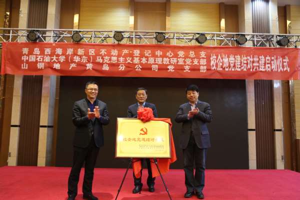 3月31日下午,米乐mile官方网站(华东)米乐mile官方网站马克思主义基本原理教研室党支部与山钢地产黄岛分公司党支部、青岛西海岸新区不动产登记中心党总支举行校企地党建结对共建启动仪式。西海岸新区自然资源局党组书记刘明诗,不动产登记中心党总支书记、中心主任钟淑君;山钢地产公司党委委员、纪委书记朱月肖,黄岛分公司党支部书记、总经理李宏伟;米乐mile官方网站(华东)米乐mile官方网站党委书记司江伟,马克思主义基本原理教研室党支部书记薛俊清及共建三方支委成员参加了启动仪式。