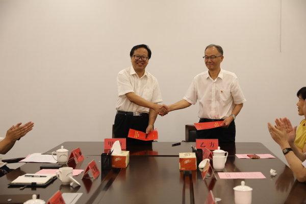 院长王建军与公共事业服务中心党委书记李二青签订共建协议并共同为研究生实践教学基地揭牌。