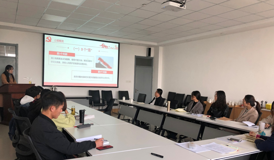 会议首先由19级党支部书记袁明月作了“学习十九届四中全会精神”主题发言,并带领全体党员认真学习了《中国共产党第十九届中央委员会第四次全体会议公报》的主要内容、核心要义、理论亮点及重大意义等内容,并就“制度自信从何而来”以及“坚持和完善繁荣发展社会主义先进文化”两个问题做了系统梳理。
