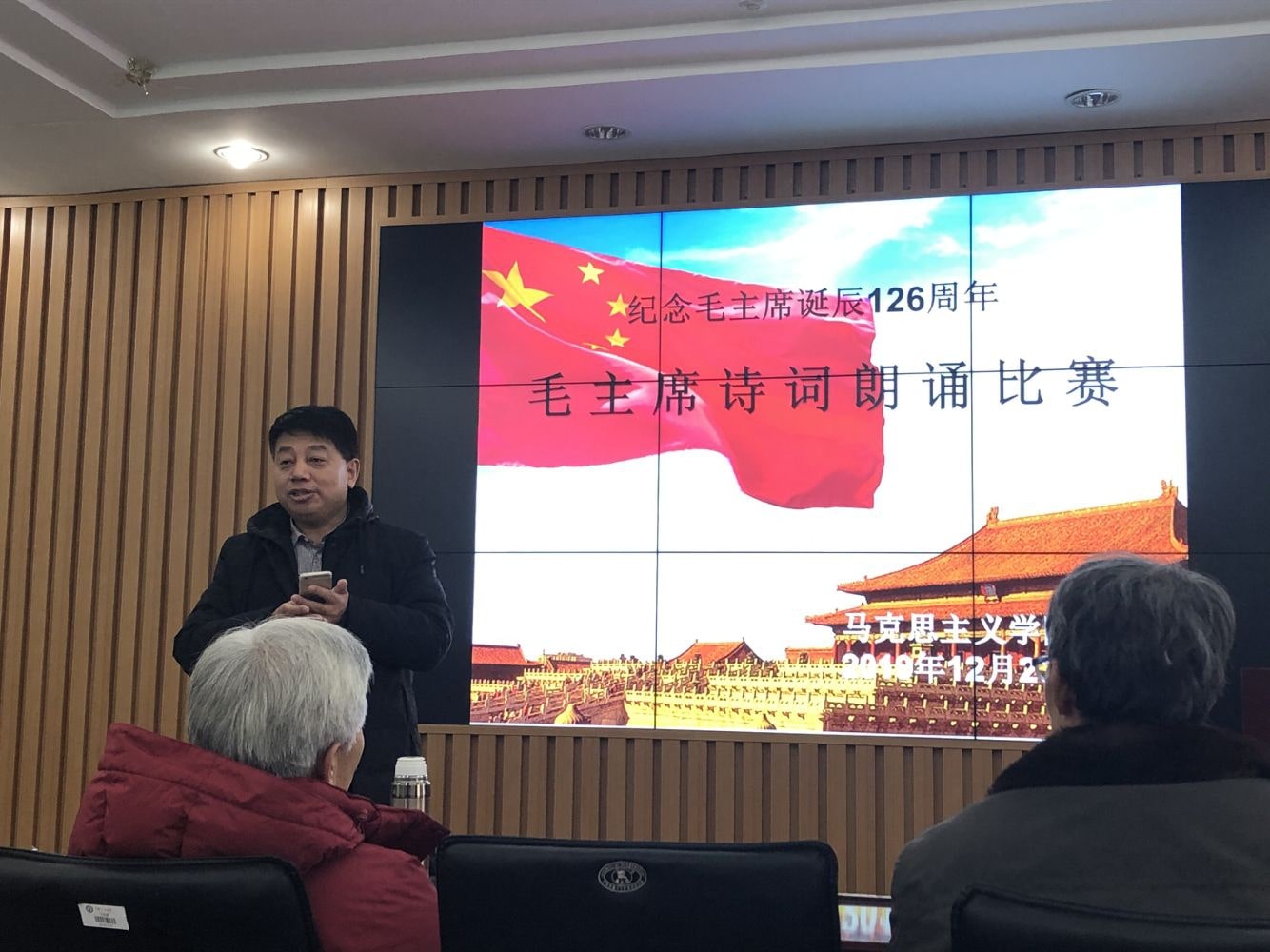 毛泽东同志是伟大的马克思主义者,伟大的无产阶级革命家、战略家、理论家,是马克思主义中国化的伟大开拓者,是近代以来中国伟大的爱国者和民族英雄,是党的第一代领导集体的核心,是领导中国人民彻底改变自己命运和国家面貌的一代伟人,是中国共产党、中国人民解放军、中华人民共和国的主要缔造者,是中国各族人民的伟大领袖。为了更好地缅怀毛主席的丰功伟绩,不忘初心、牢记使命,在米乐mile官方网站党委指导下,院工会特举办“纪念毛主席诞辰126周年”系列活动。12月20日下午, 毛主席诗词朗诵比赛如期举行。