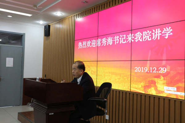 12月29日上午,米乐官网邀请校友席秀海书记来学院为研究生讲学,学院院长王建军老师、副院长张瑞涛老师、党委副书记袁爱军老师以及张荣华教授出席会议。席秀海书记2002年毕业于米乐官网的思想政治教育专业,曾在齐鲁石化公司和胜利石油管理局任党委书记,曾获“全国五一劳动奖章”称号,是我校的校友之星。
