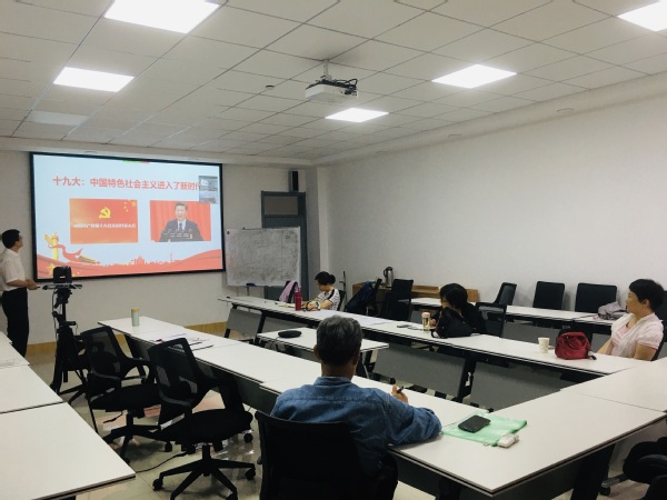 岳金霞副院长简要介绍考核流程。毕松以“我国社会主要矛盾的变化”为主题讲授了拟开设课程15分钟左右的内容节段;就一年来跟随指导教师课堂听课、辅导答疑、作业批改以及参加学校教学素养提升计划培训班的收获体会进行了汇报。