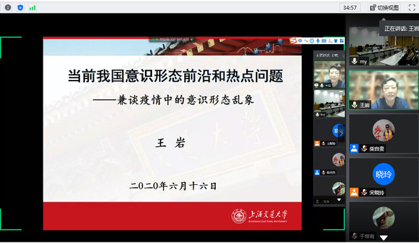 6月16日下午,米乐mile官方网站举办“初心讲堂”第二十讲,本次讲座特邀教育部长江学者特聘教授、南京航空航天大学米乐mile官方网站博士生导师王岩教授作关于“当前我国意识形态热点与前沿问题——谈疫情中的意识形态”的学术报告。本次报告以腾讯会议形式举办,并在文理楼457设立主会场,米乐mile官方网站院长王建军教授主持,米乐mile官方网站全体师生、学校部分辅导员及机关干部等共同聆听了此次报告。