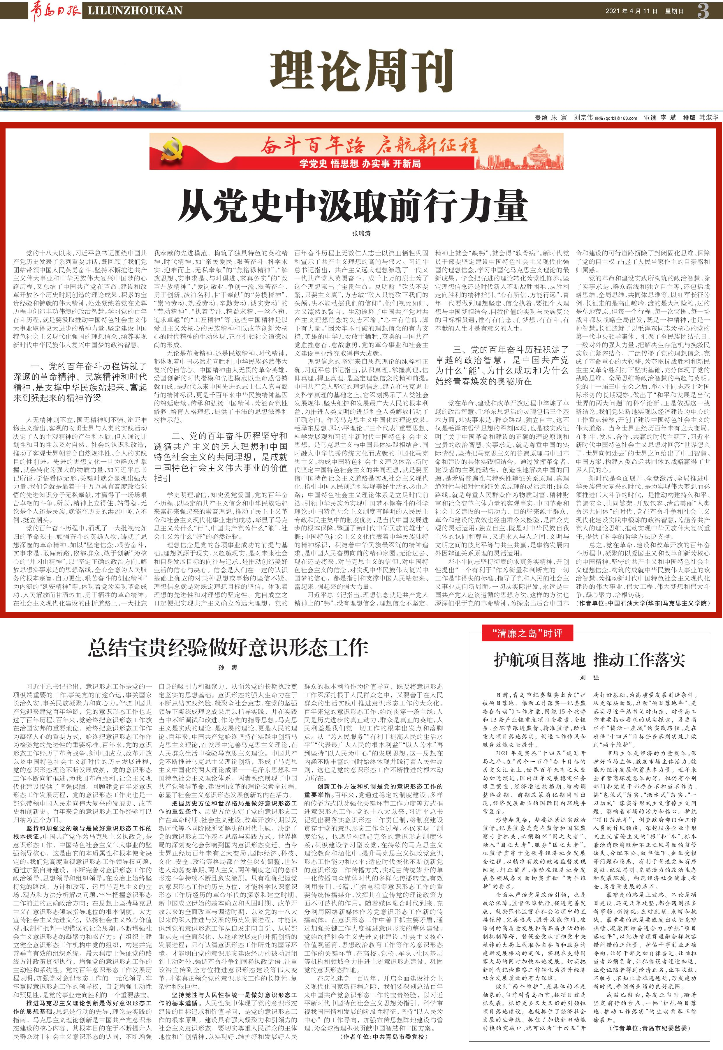 2021年4月11日,《青岛日报》第3版(理论版)刊发米乐官网张瑞涛教授理论文章《从党史中汲取前行力量》。