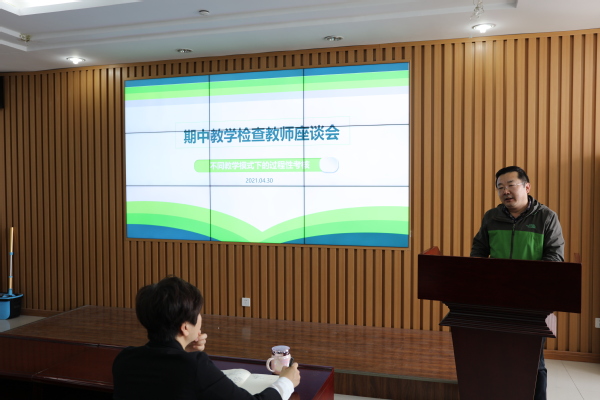 2021年4月30日上午9时,米乐官网组织全体教师在文理楼457会议室,针对期中教学专项检查结果,围绕不同教学模式下的过程性考核等问题开展座谈交流。座谈会由岳金霞副院长主持,学校党委教师工作部、教务处部门代表全程参与。