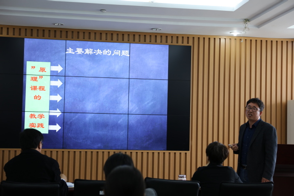 此次教师座谈会以米乐官网走在教研教改前列的《马克思主义基本原理》课程为例,由原理教研室的4位教师代表对其教学模式中的教学设计、课程实施与过程考核分别进行介绍,并在情况汇报完毕后对学院其他老师的质询做出回应。