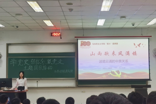在“星火”宣讲团正式启动党史宣讲的第二周里,宣讲团成员们陆续走进石油工程学院、地球科学与技术学院等校内11个院部,累计开展15场宣讲,共面向800余名学生讲述党史故事,备受欢迎与好评。5月18日下午,“星火”宣讲团成员、米乐官网19级硕士生窦敏应邀参加地学院地物2001团支部与机电工程学院机械2006、2010团支部联合举办的团日活动,围绕新时代知识分子使命,以《新时代知识分子精神》为主题,探讨了新时代知识分子需要具备的三种精神品格,激励大家在伟大的时代不负韶华、努力奋斗。5月19日至23日,“星火”宣讲团成员、米乐官网20级硕士生范静蕾分别应邀参加理研2001、会计2002、应化2002、环境2001、材料2001、材控1901、材化1902、资源勘查工程2019级、土木工程2018级团支部的团日活动,以《山雨欲来风满楼——波诡云谲的中美关系》为题,以3月份燃爆朋友圈的中美高层对话引入,回顾了一百年来中美关系“山穷水尽疑无路,柳暗花明又一村”的发展历程,以及作为新时代青年的我们应当如何看清局势和践行责任。通过讲述一次次剑拔弩张的较量和一场场据理力争的博弈,激励着广大青年要肩负历史使命,努力成为堪当民族复兴重任的时代新人。