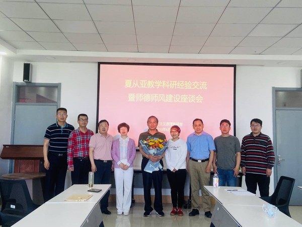 最后,闫林霞老师作为教师代表为夏从亚教授献上鲜花,表达了教研室全体老师们的祝福。