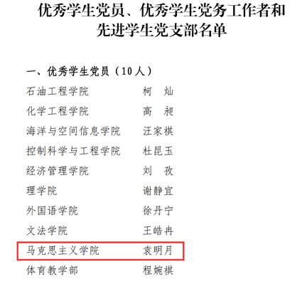 在隆重庆祝中国共产党成立100周年、全面开展党史学习教育之际,为进一步加强学生党建和思想政治教育工作,表彰先进,树立典型,校党委本着公开、公平、公正的总体原则,在全校范围内评选表彰优秀学生党员、优秀学生党务工作者和先进学生党支部,米乐mile官方网站研19级党支部获先进学生党支部表彰,19级硕士生袁明月获优秀学生党员表彰。