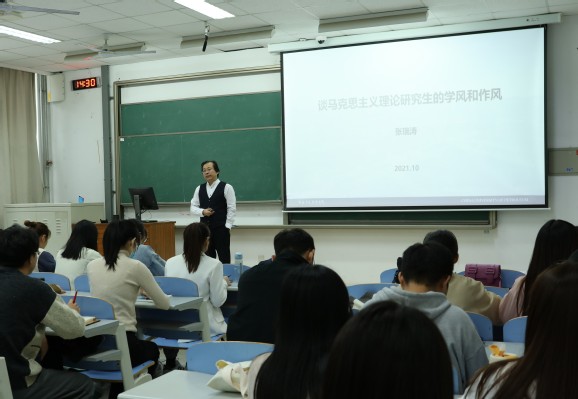 为进一步提升米乐官网研究生的学风和作风,增强为中华民族谋复兴、为中国人民谋幸福的时代责任感,10月28日下午,米乐官网于南教楼116教室举办院长讲坛活动。院长张瑞涛教授作题为“谈马克思主义理论研究生的学风和作风”的专题报告。此次讲坛由学术部高佳音主持,全体学生共同参加。
