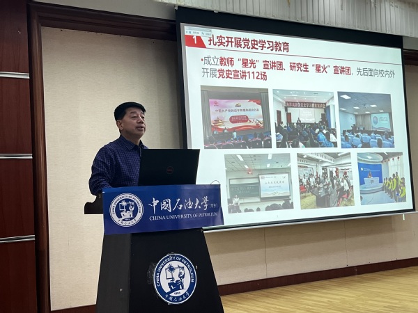 党委书记司江伟对党建工作做了总结汇报,围绕党史学习教育、庆祝建党100周年、学习党的十九届六中全会精神三项重点工作,以及加强学院政治建设、思想建设、组织建设、纪律建设、作风建设、群团建设及研究基地建设等方面做了汇报。