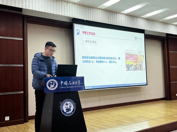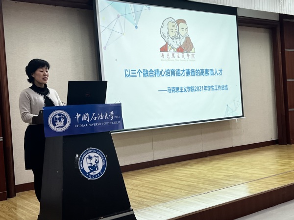 学院副院长宋海儆、崔军伟分别对学院2021年的教学、科研、研究生教育等工作做了总结汇报。学院2021全年教学秩序顺畅,教学成效突出,无任何教学事故,获多项国家级省部级教学比赛和教学成果奖励。同时,学院科研工作也有较大进展,在课题立项、社会科学优秀成果奖、论文发表、学术专著出版等方面取得了较好成绩。党委副书记、副院长袁爱军就学院学生工作做了主题为“以三个融合精心培育德才兼备的高素质人才”的总结汇报,展示了学院学子一年来努力取得的成果。