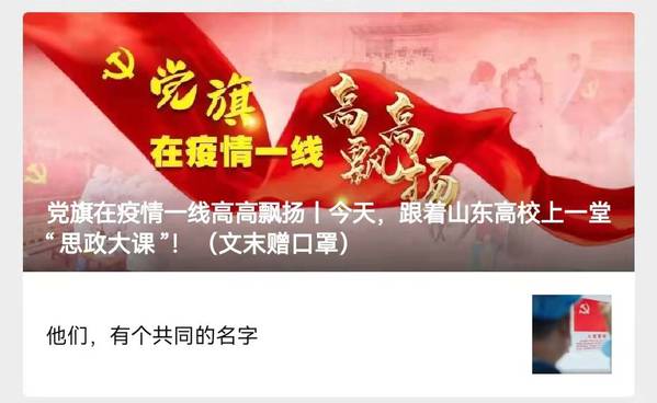 自疫情开始以来,米乐官网师生党员积极参加志愿服务活动的事迹得到了来自各级单位的关注与鼓励。从青春石大的《请组织批准!》,到山东教育发布的《这个春天,我们同上一堂“思政大课”》再到灯塔党建在线的《今天,我们跟着山东高校同上一堂“思政大课》。他们用着文字和图片记录了马院同志们的面对疫情时的一次次挺身而出。