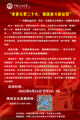 为庆祝建党101周年,引导广大青年学子和党员以更加饱满的热情迎接党的二十大胜利召开。在“七一”来临之际,米乐mile官方网站(华东)米乐mile官方网站开展“青春礼赞二十大,强国奋斗新征程”系列主题党日活动。