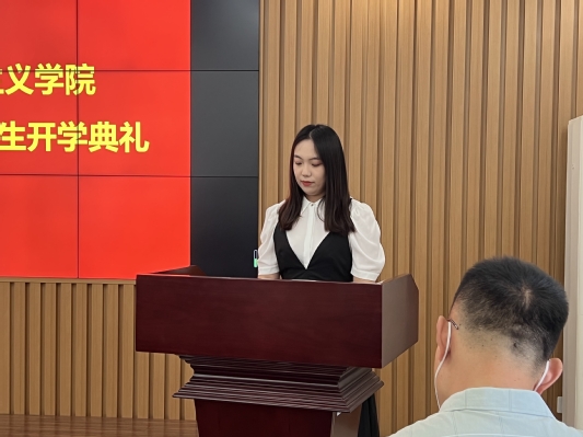 新生代表2022级硕士研究生倪萌进行了题为“以梦为‘马’,不负韶华;磨砺使得玉成,奋斗方能致远”的发言,倡导马院学子应展现蓬勃的朝气和新时代青年该有的责任担当,做“鼓足劲头”的奋斗者、“勇立潮头”的石大人。在校生代表2021级硕士研究生蒋嘉诚在发言中对我们马院青年“该成为什么样的人”发表了自己见解,并鼓励新生锻炼好自身本领,更好为时代服务助力。教师代表,形势与政策教研室主任郎帅副教授从自身学习经历出发,分享了自己的学习经验,并对新生提出了“目标高一点”“步子快一点”以及“知识多一点”这三“点”期待。最后,院长张瑞涛教授在讲话中鼓励新生在学习中要明确目标,在生活中要劳逸结合,并希望新生能够成为一个有情怀、有理想并且阳光快乐的人。
