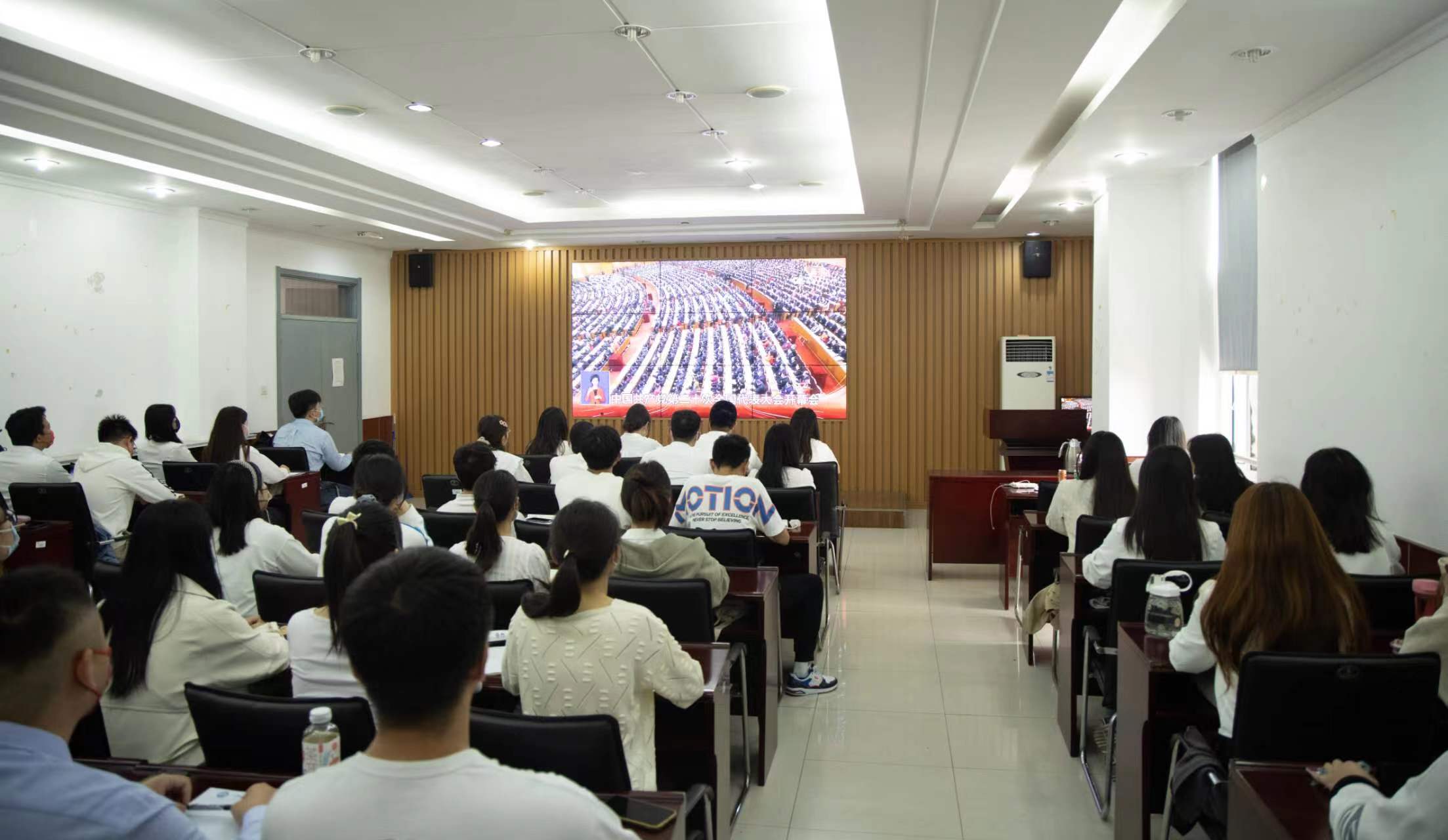 中国共产党第二十次全国代表大会于2022年10月16日上午10:00在北京人民大会堂隆重召开,习近平总书记代表第十九届中央委员会向大会作报告。学习、宣讲、阐释并做好大会精神的“三进”工作,将是米乐mile官方网站今后一段时期的重要任务。按照学校的要求,学院党委组织全体教师、在校博士生及硕士研究生于16日上午10:00在文理楼445、457、459和462教室统一观看大会开幕式。