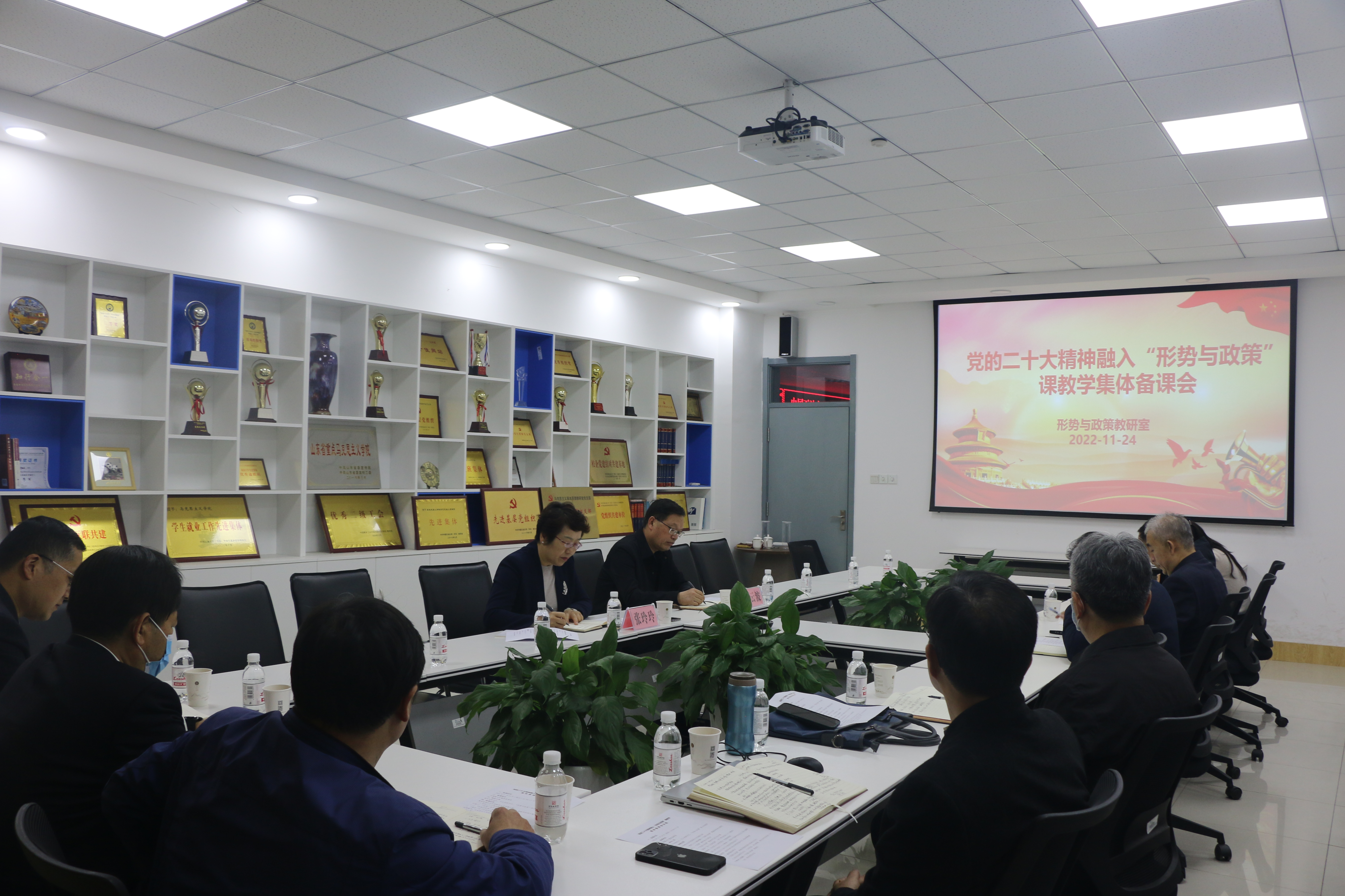 2022年11月24日,党的二十大精神融入“形势与政策”课集体备课会在文理楼459举行,学校副校长张玲玲、党委副书记万云波参加了集体备课会。备课会由米乐mile官方网站副院长宋海儆主持,“形势与政策”课全体教师共同参加了集体备课会,围绕党的二十大精神如何进课堂、进学生头脑进行了深入研讨,张玲玲副校长、万云波副书记积极参加了讨论,并提出了意见和建议。