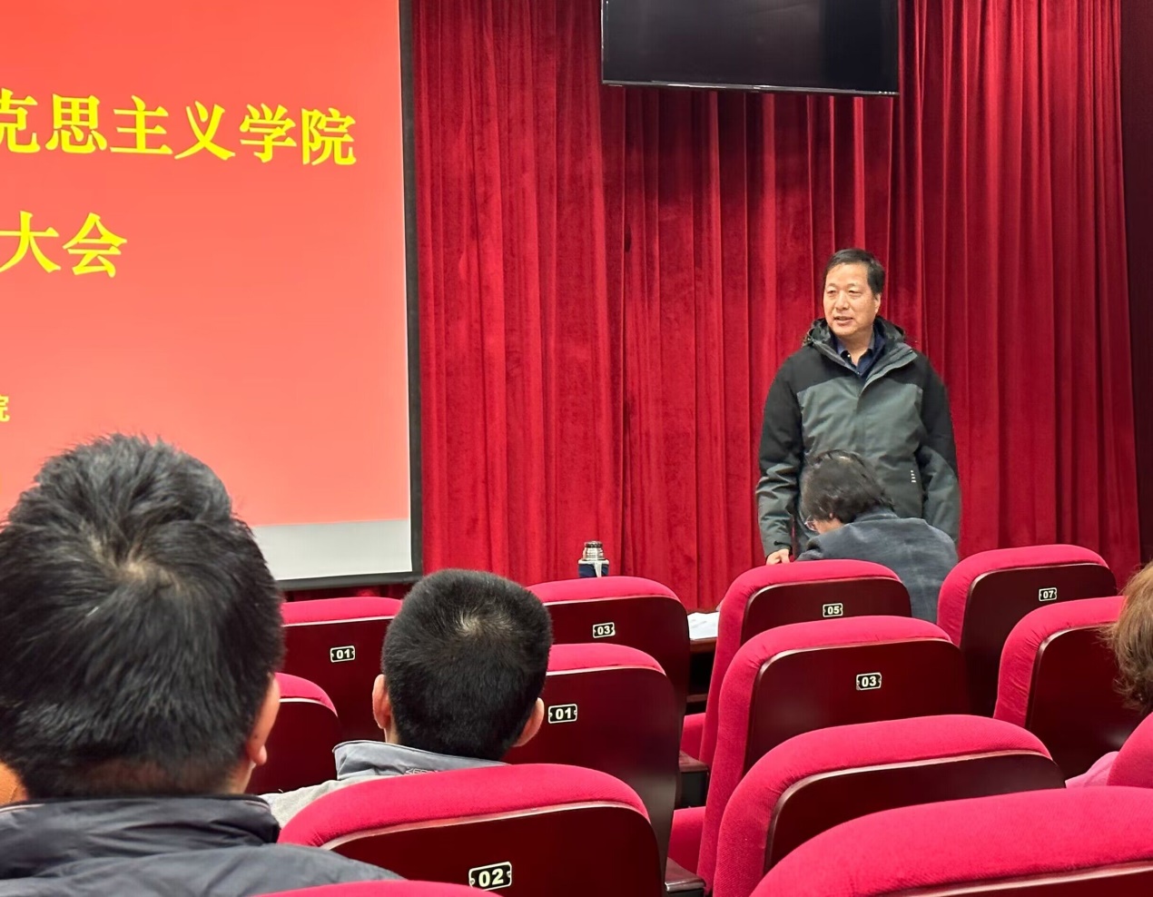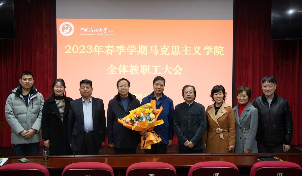 2月28日,学院举行欢送梅善忠老师退休仪式,学院党委书记司江伟主持仪式,全体教职工参会。