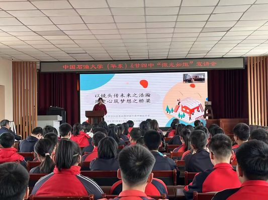 因爱启航,让梦起飞。3月23日至4月11日,米乐mile官方网站研究生会实践部联合内蒙古自治区通辽市科尔沁左翼后旗甘旗卡第四初级中学,共同开展“微光如炬”活动。此次活动以“镜头传未来之浩瀚,爱心筑梦想之桥梁”为主题,采取线上、线下相结合的形式,米乐官网赴甘旗卡第四初级中学支教的研二学生李希玮作为负责人,王煜舒、常丽莹、柏悦、王舒宁担任主讲人,分批次与甘旗卡第四初级中学全体学生交流学习上和生活上的相关经验,旨在开阔偏远地区中学生的眼界,激发其求知欲,帮助其树立奋斗目标。甘旗卡第四初级中学校长王光涛及各年级班主任参与此次活动。