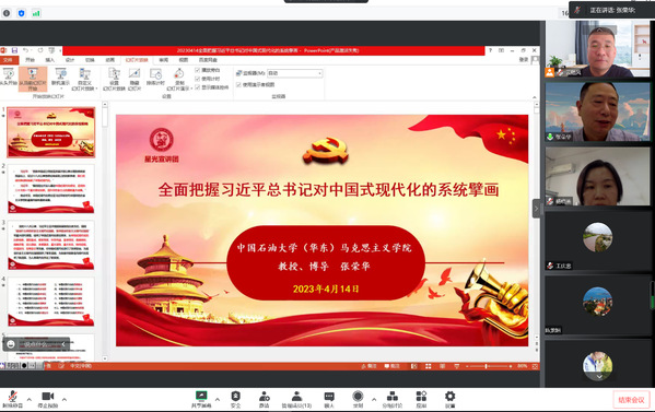 为深入学习宣传贯彻党的二十大精神,全面领会把握落实学习贯彻习近平新时代中国特色社会主义思想主题教育的总要求,4月14日下午,毛泽东思想和中国特色社会主义理论体系概论教研室党支部与习近平新时代中国特色社会主义思想概论教研室党支部联合开展主题教育。本次活动特邀张荣华教授作题为“习近平总书记对中国式现代化的系统擘画”的专题报告,两个党支部所有无课党员在线上参与活动。