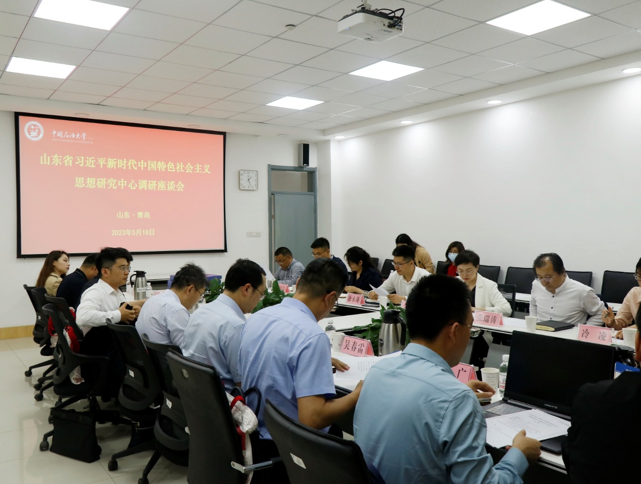 2023年5月18日下午,米乐官网举办山东省习近平新时代中国特色社会主义思想研究中心调研座谈交流会,会议由学校文科建设处处长金玉洁主持,山东省习近平新时代中国特色社会主义思想研究中心成员、青岛市委宣传部理论处负责人、学校相关部门负责人、米乐mile官方网站和文法学院教师代表等参加会议。