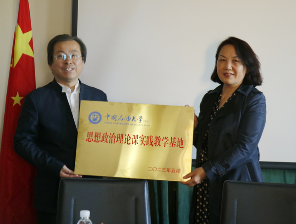 青岛市城市文化遗产保护中心致力于征集、传承、保护、传播、弘扬青岛城市优秀文化遗产,其所属场馆青岛德国总督楼旧址博物馆是青岛市城市文化遗产保护的一张靓丽名片,它见证了青岛百年风雨沧桑,是独具特色的爱国主义教育基地。青岛市城市文化遗产保护中心主任王建梅在致辞中介绍了青岛市城市文化遗产保护中心的基本情况以及近年来利用馆藏红色革命文物开展红色思政教育的工作情况。我校团委书记季林海在致辞中指出,通过双方的合作共建,可以依托博物馆红色资源进行思政育人,引导石大学子感受青岛独特的地域精神与深刻的文化积淀,传承革命精神、赓续红色血脉。随后,双方共同签署合作协议,为思政课实践教学基地揭牌。