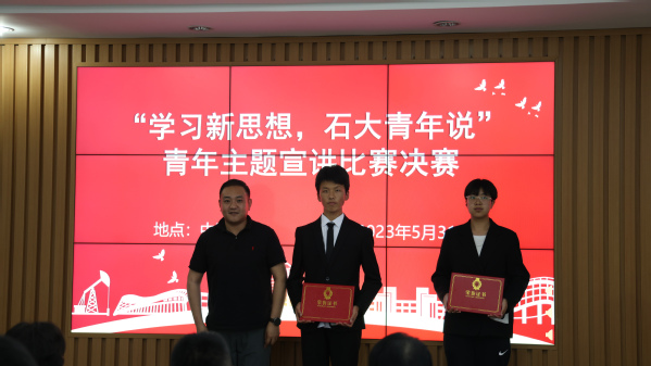 为贯彻落实党的二十大精神,开展好学习贯彻习近平新时代中国特色社会主义思想主题教育,鼓励广大学生用青年视角讲好中国故事,发好时代新声,传播校史文化,弘扬石大精神,由校研究生会、学生会、米乐mile官方网站研究生会联合举办的“学习新思想,石大青年说”青年主题宣讲比赛决赛暨颁奖典礼于5月31日下午在文理楼457举行。校团委副书记姜士绅,米乐mile官方网站党委副书记副院长袁爱军、副教授解晓燕、青年教师王鹏翔以及相关学院的团委书记和负责老师参加了此次活动。