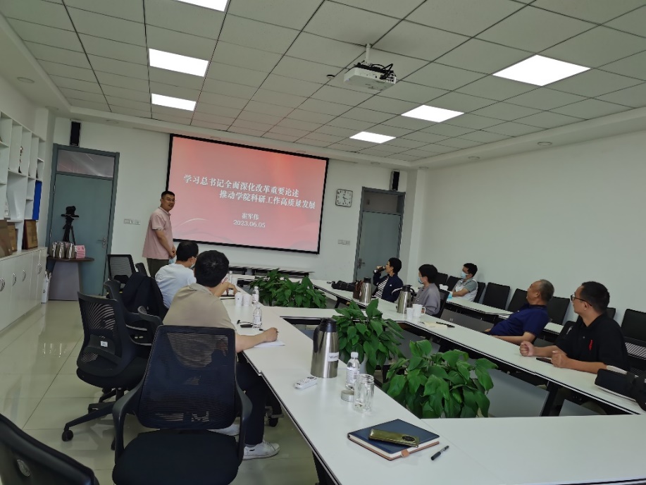 活动的第二个议程是主题教育专题党课。崔军伟副院长从“为什么要全面深化改革,怎样推进全面深化改革,深化学院科研工作改革的设想”三个方面,作了题为《学习习近平总书记全面深化改革重要论述,推动学院科研工作高质量发展》的主题教育专题党课。党支部书记王克霞老师以《历史和人民选择了社会主义》为题,从“为什么选择社会主义,怎样走上社会主义道路,社会主义道路的确立意义”等三个方面汇报了近期学习贯彻习近平新时代中国特色社会主义思想的一些感悟。随后,老师们就如何将习近平新时代中国特色社会主义思想融入纲要课和新中国史展开交流讨论。