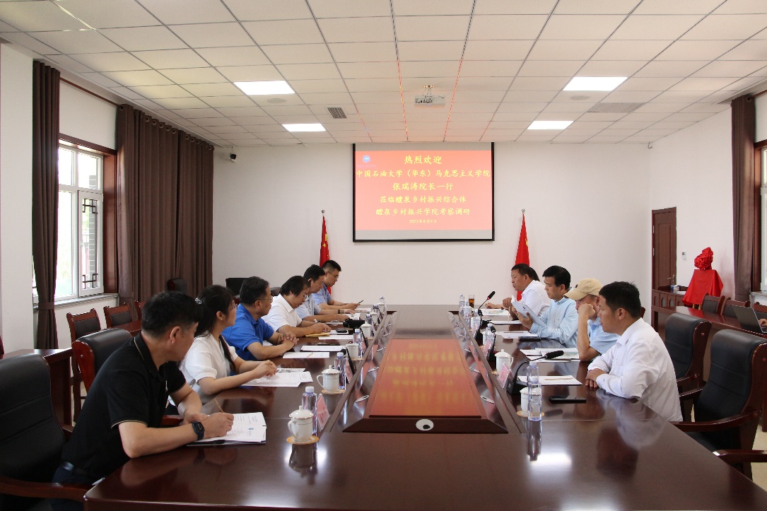 8月9日,学院院长张瑞涛带队赴邹平市青阳镇醴泉乡村振兴学院,开展座谈交流并举行思想政治理论课实践教学基地挂牌仪式。学院副院长宋海儆、崔军伟,学院教授委员会主任王建军,博士生导师张荣华教授,以及滨州医学院米乐mile官方网站院长卜建华,醴泉乡村振兴综合体联合发起人、醴泉乡村振兴战略推进委员会主任、山东财经大学产业发展研究院院长张志元,青阳镇党委书记李波,镇人大副主席崔中波等相关人员参加挂牌仪式并进行座谈。