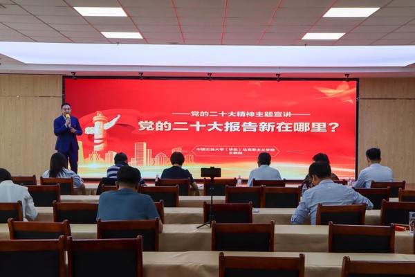 王鹏翔以“党的二十大报告新在哪里?”为宣讲主题,重点阐述了党的二十大报告作为党的创新理论的一个重要成果,在主题、结构、内容和文风等方面所展现出的新变化。宣讲结合报告的具体内容,通过比较党的十六大到二十大报告主题的变化,两个“凡是”到三个“凡是”的变化等内容,深刻阐明了党的二十大报告是我们夺取新时代中国特色社会主义新胜利的政治宣言和行动纲领这一观点,对从整体上把握党的二十大精神实质和核心要义具有很好的启发意义。