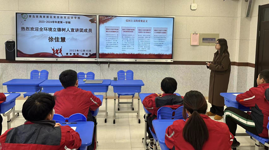 12月15日,米乐mile官方网站(华东)米乐mile官方网站在读研究生徐佳慧为西海岸新区竞技体育学校40余名师生进行了“弘扬爱国主义精神,做新时代的忠诚爱国者”的主题宣讲。徐佳慧从什么是爱国主义精神入题,对爱国主义的定义及要求给予了详细的解读,并结合习近平总书记的重要讲话内容进行了针对性地讲解。整场宣讲将案例与理论相结合,激励青少年学生要用实际行动做新时代忠诚的爱国者,发扬吃苦耐劳的精神,练好专业技能的同时也要学好文化知识,为将来建设祖国做好准备。