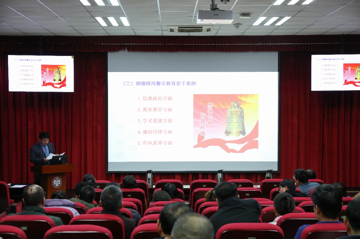 为落实立德树人根本任务,增强教师队伍的廉洁自律意识和师德师风建设,强化作风建设,3月20日下午,学院在文理楼142召开全院教职工大会,集中进行师德师风教育,院长张瑞涛主持会议,党委书记司江伟领学相关文件并做讲话,学院全体教职工参加会议。