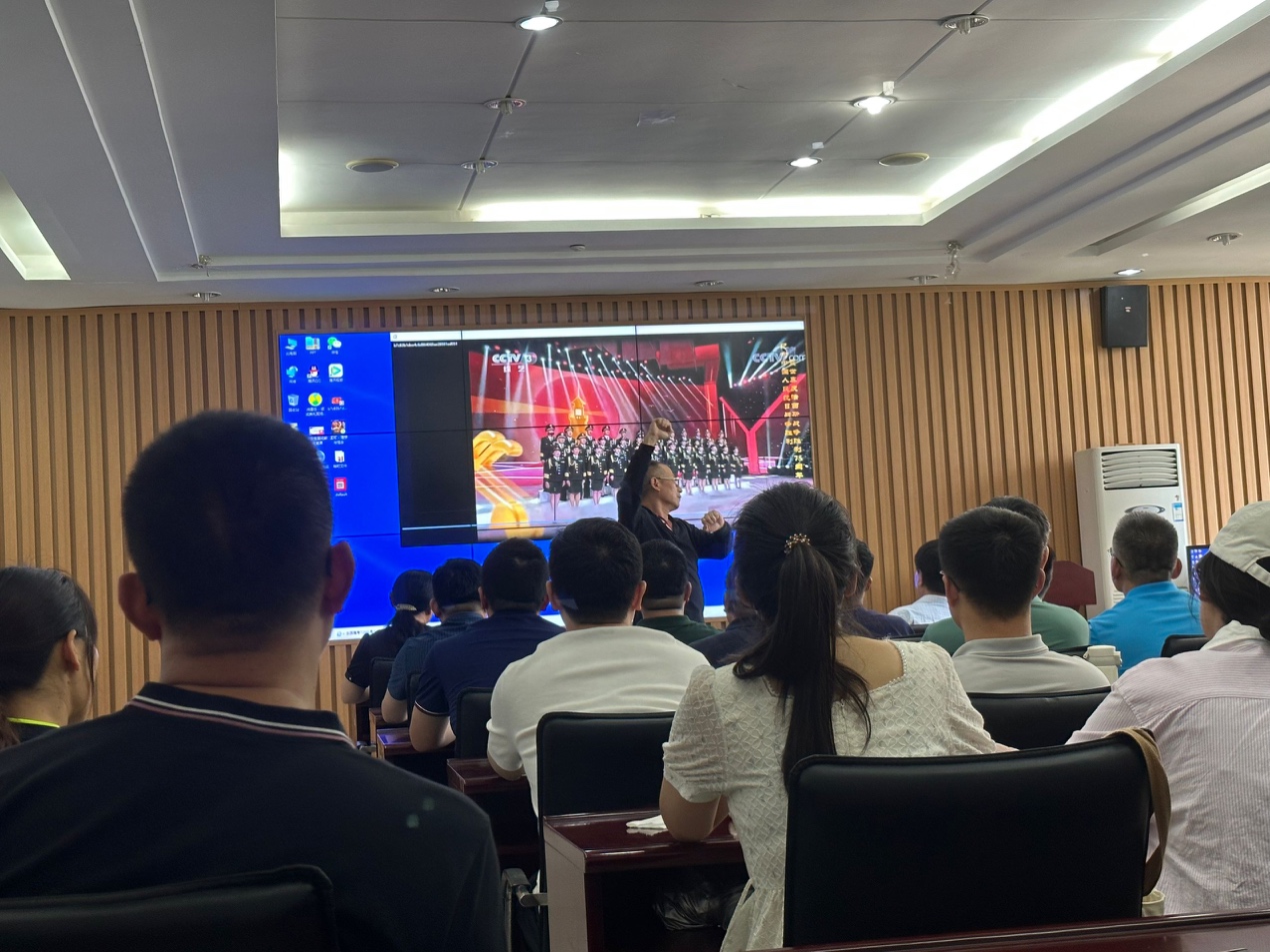 7月3日下午,为参加今年九月底举行的“礼赞新中国,歌颂新时代”教职工合唱比赛,马院工会组织全院教职工进行合唱练习,提前做好热身活动。学院党委书记司江伟亲自带领大家激情高歌《跟着共产党走》。