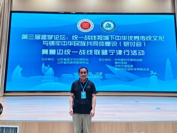 2024年8月8日至9日,由山东省孟子文化研究会、山东省民族宗教研究会共同主办,德州市委统战部、德州学院、中共宁津县委承办的“第三届孟学论坛:统一战线视域下中华优秀传统文化与铸牢中华民族共同体意识研讨会”在德州市宁津县举办,来自全国各地高校、研究机构和统战部门的专家学者100余人参加了会议,会议围绕孟子思想及其政治哲学意蕴、孟子思想与中华民族共同体意识的关系、习近平文化思想等议题进行广泛深入的研讨,大会既有知名专家的专题报告,也有地方统战部门积极探索中华民族共有精神家园建设的实践经验分享,还分九个专题分组进行了研讨交流。