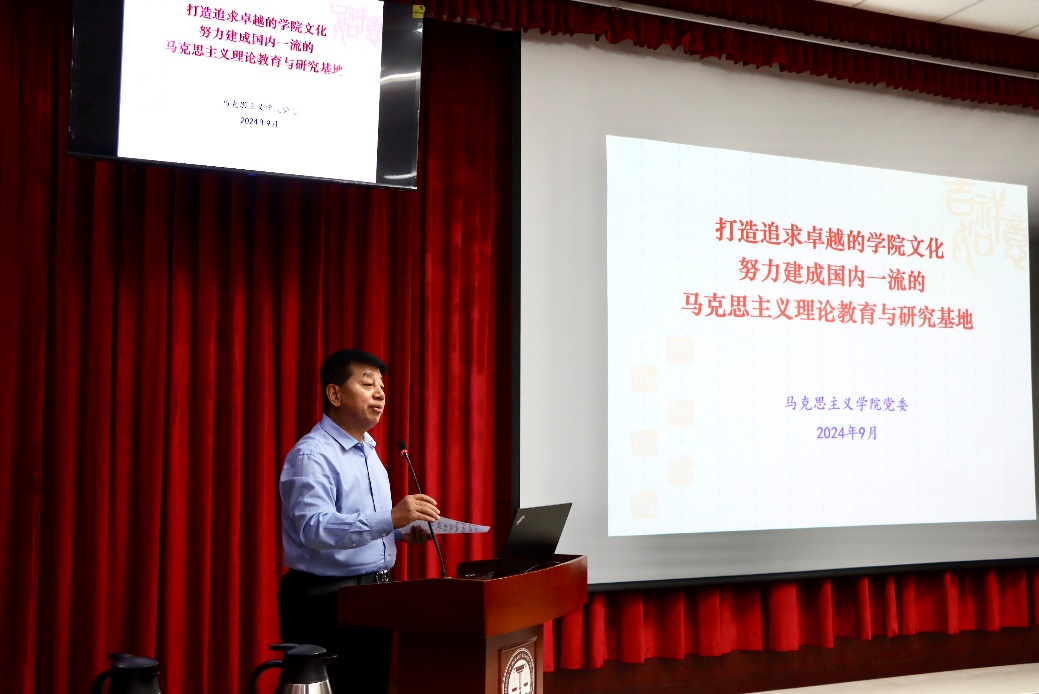 张瑞涛院长对秋季学期的工作作了总体安排。他强调,学院在未来发展中要保持高度的忧患意识。学院全体教职工要有所作为、主动作为、尽其所为,要努力建设创新型、和谐型学院,争取多出高水平成果,努力把学院建成全国行业特色马院。