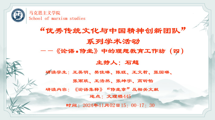 为深入挖掘中华优秀传统文化的思想政治教育资源价值,米乐mile官方网站“优秀传统文化与中国精神创新团队”于10月12日、19日、26日以及11月2日下午,在文理楼445举办了四次“《论语· 侍坐》中的理想教育工作坊”系列学术研讨活动。活动由团队负责人石超副教授主持,参加活动的还有张会芸副教授、刘继元老师、曹春华主编,以及思想政治教育学科方向的部分研究生同学。四次活动,均采取师生共聚一堂、研读经典、讨论争鸣的形式来开展。