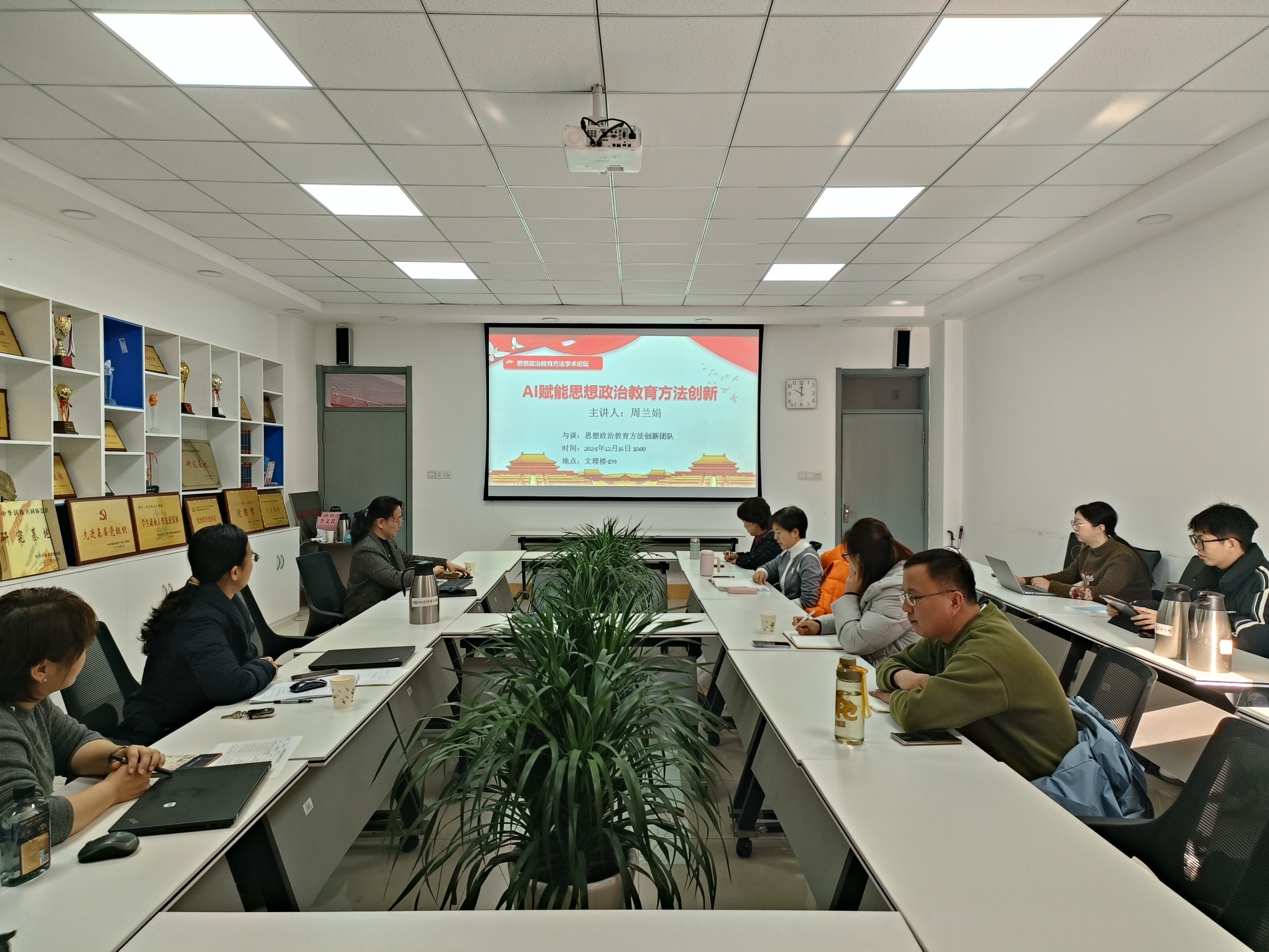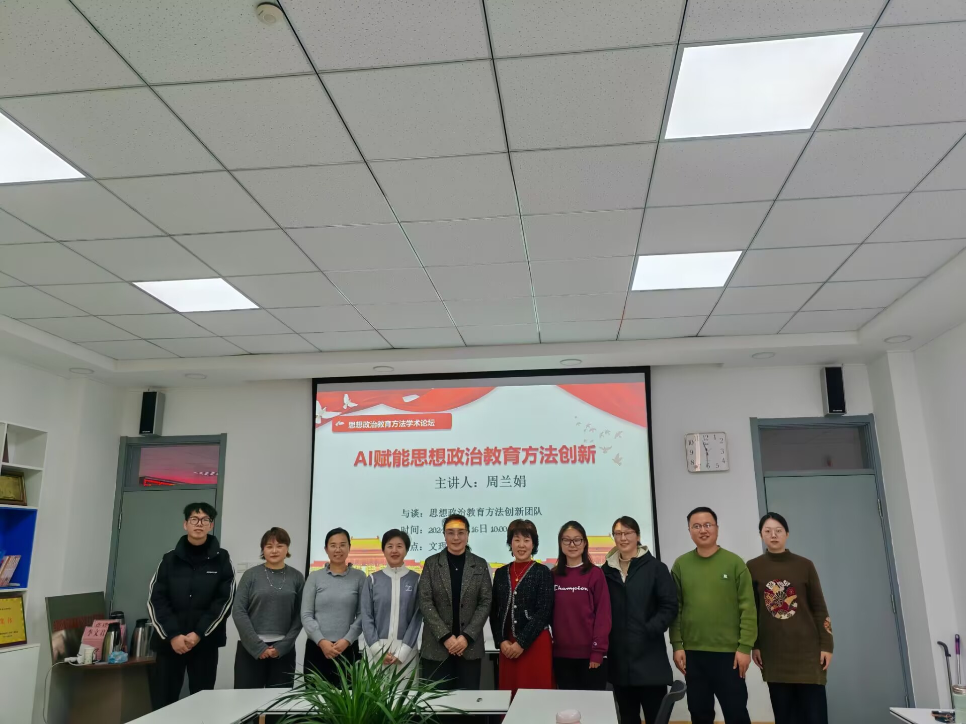 2024年12月16日上午10点,由学院思想政治教育方法创新团队举办、我校控制科学与工程学院电工电子学教学中心主任周兰娟主讲的“AI赋能思想政治教育方法创新”专题讲座在文理楼459顺利举行。