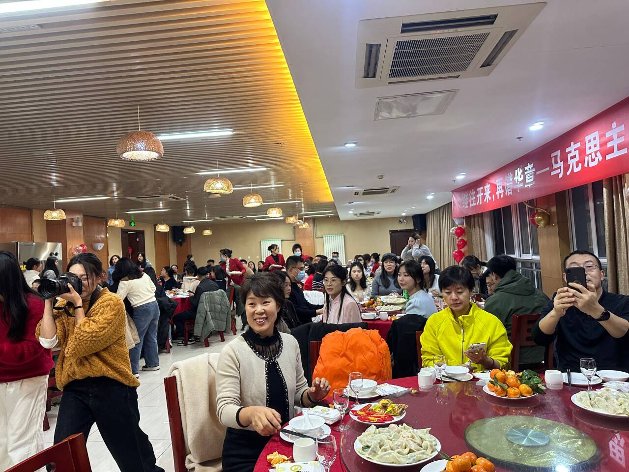 在温馨和谐的氛围中,学院师生们一起包饺子,共同迎接新年的到来。大家分工合作,有的擀皮,有的包馅,欢声笑语不断,现场气氛热烈而融洽。