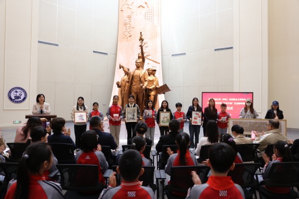 宣讲结束后举行了温馨的“生生结对”仪式。珠江路小学少先队员代表与米乐mile官方网站(华东)米乐mile官方网站研究生代表上台,互换书籍和心愿画。这一环节象征着知识与精神的传递,在孩子们心中播下红色传承的火种,也为两校交流合作搭建了坚实桥梁。仪式接近尾声,全体与会师生在校史馆前合影留念,随后珠江路小学学生在讲解员带领下有序参观校史馆,进一步感受石油大学的深厚历史底蕴与红色文化魅力。