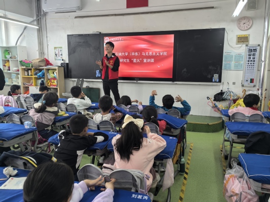 2025年5月9日,米乐mile官方网站 “星火宣讲团” 6 名成员在王会老师的带领下首次走进青岛市西海岸珠江路小学,为四个班级的小学生带来以 “新民主主义时期中国共产党精神谱系” 为主题的沉浸式宣讲。活动围绕长征精神、沂蒙精神、鸡毛信的故事、南泥湾精神、大别山精神等精神展开,通过生动的历史叙事与互动体验,在青少年心中播撒红色基因的种子。