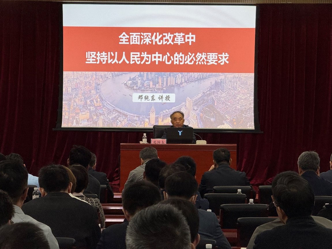 讲座伊始,邓纯东研究员以深厚的学术功底与鲜明的时代视角指出,坚持人民至上、以人民为中心,是习近平新时代中国特色社会主义思想的重要世界观和方法论,是进一步全面深化改革、推进中国式现代化的一条重大原则。在主旨阐述中,邓纯东研究员谈及了“坚持人民至上”这一原则的由来,讨论了在全面深化改革中应如何坚持这一原则,并从“坚持人民至上,坚持以增进人民福祉作为改革的出发点和归宿““坚持人民主体地位,落实人民主人权力、发挥人民在改革中的主人作用”“坚持植根人民,把巩固党与人民群众生死相依、血肉联系的关系作为改革的重要任务与重要价值目标”“坚持以人民拥护、满意、支持为标准决定和判断各项改革,确保改革结果不断增进人民获得感、安全感、幸福感”四个要求进行系统论述。