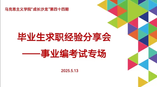 为助力马院学子精准把握事业编考试动态,掌握科学备考方法,提升备考实效,5月13日下午,学院通过腾讯会议平台成功举办第四十四期“成长沙龙”系列活动——毕业生求职经验分享会之事业编考试专场。本次活动特邀2022级硕士研究生李寿玺、周家豪担任主讲人,由王会老师主持,2023级、2024级全体硕士研究生积极参与。