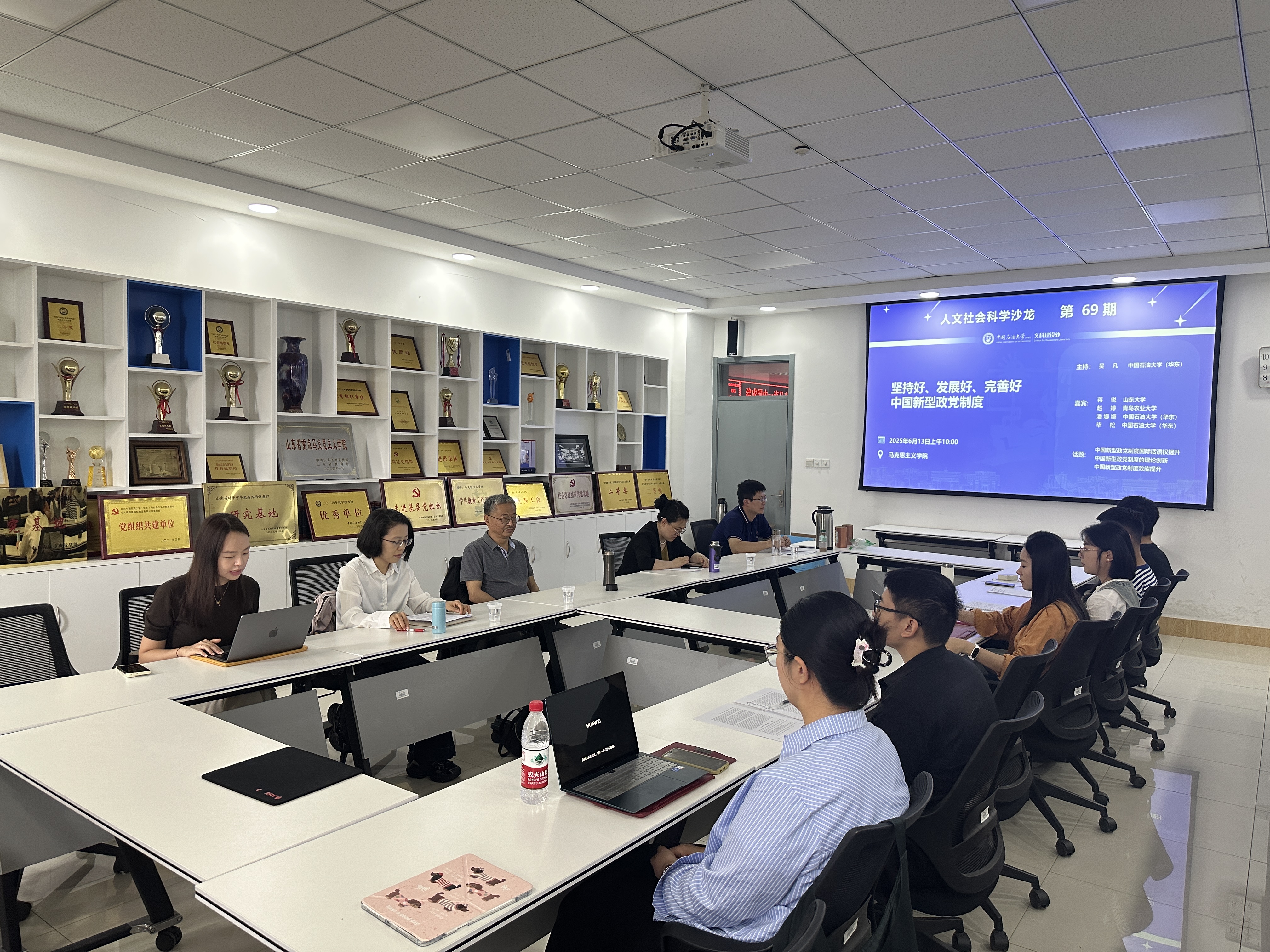 2025年6月13日上午,第69期人文社会科学青年学者沙龙在文理楼459举行,主题为“坚持好、发展好、完善好中国新型政党制度”。此次沙龙的主讲嘉宾为山东大学蒋锐教授、青岛农业大学赵婷博士和米乐官网的潘娜娜教授、吴凡博士、毕松博士,蒋锐教授和潘娜娜教授担任点评专家。米乐mile官方网站部分硕博研究生参与了此次研讨。