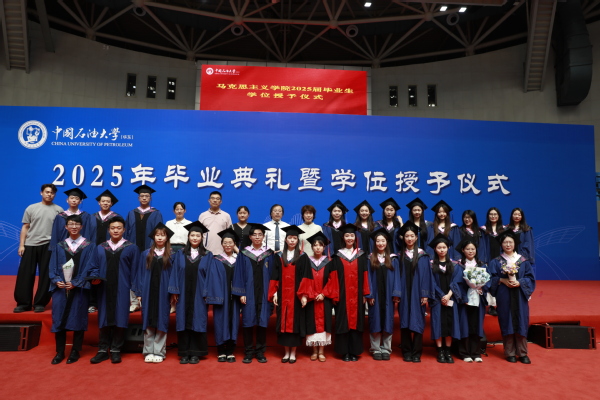仪式进入尾声,全体毕业生以及学院领导、老师上台合影留念,米乐mile官方网站2025年学位授予仪式圆满落下帷幕。唐岛湾畔的骊歌悄然奏响,马院学子的征程正待启航,2025届毕业生将秉持“石大人”“马院人”的理想与担当,如璀璨星火般闪耀祖国各地,以青春姿态续写属于他们的赤子华章。