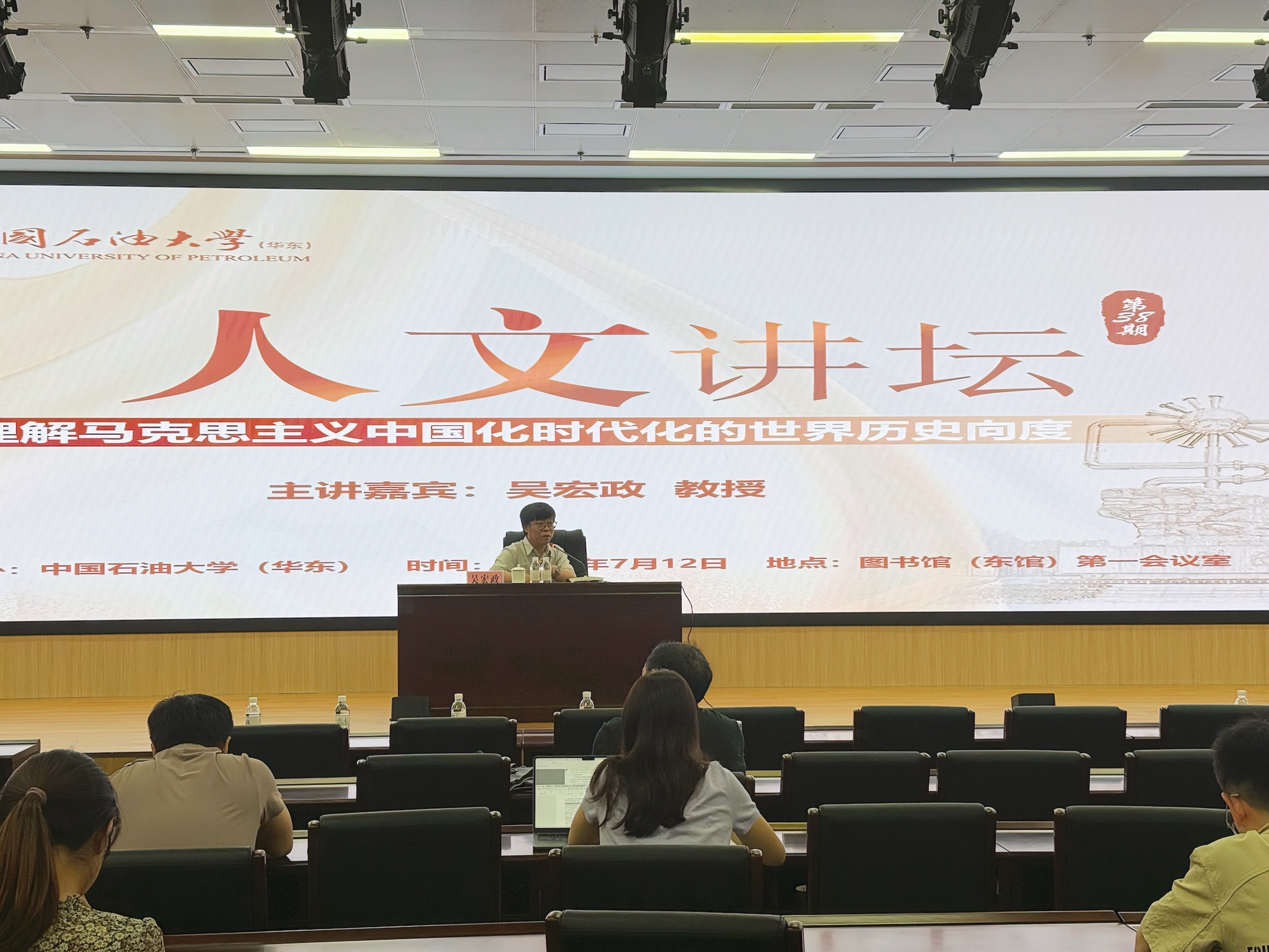 7月12日,吉林大学米乐mile官方网站院长、博士生导师吴宏政教授应邀做客第38期石大人文讲坛,为广大师生作了一场以“理解马克思主义中国化时代化的世界历史向度”为主题的学术报告。讲坛由文科建设处主办,米乐mile官方网站承办,米乐mile官方网站院长张瑞涛主持。